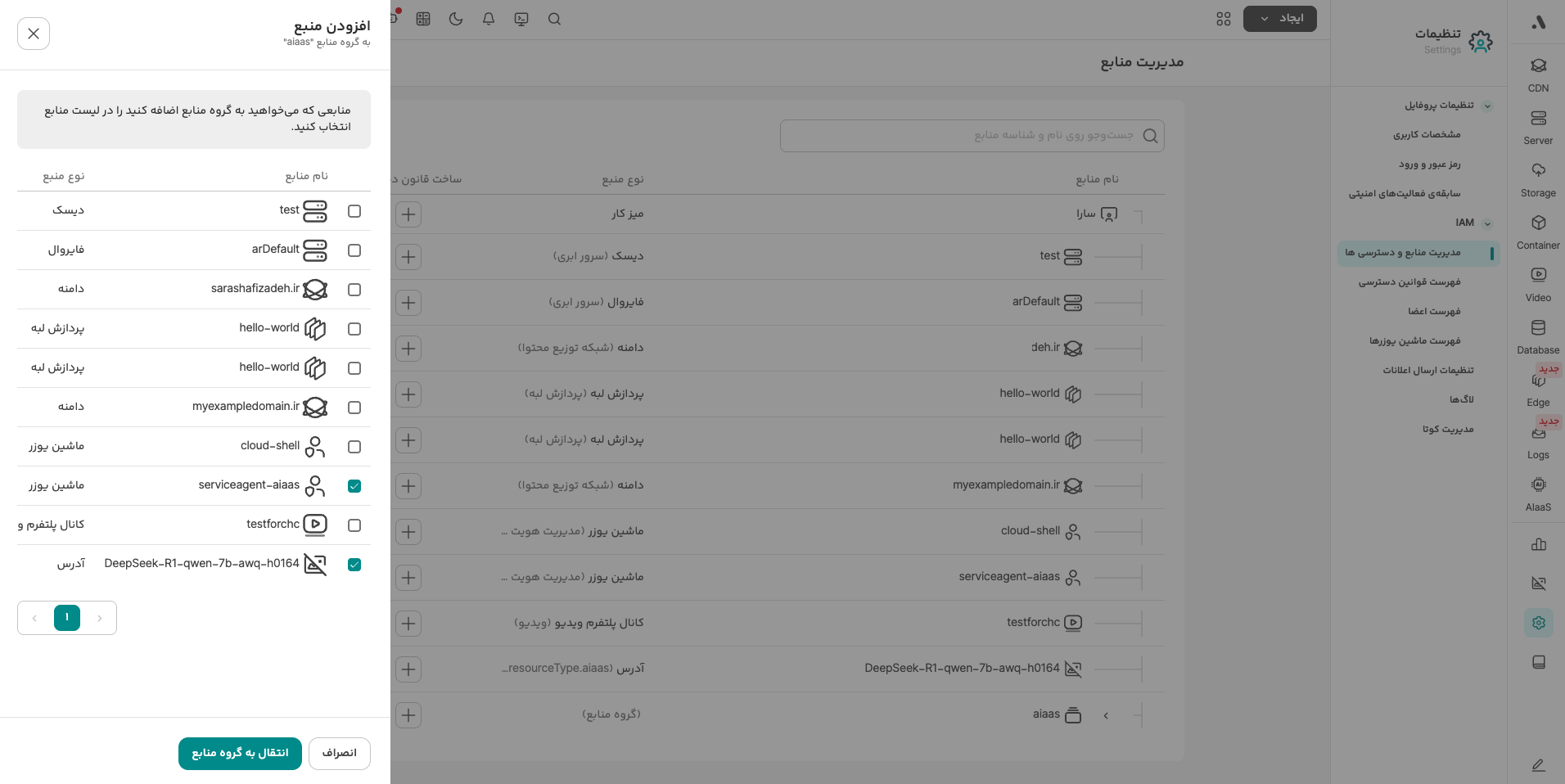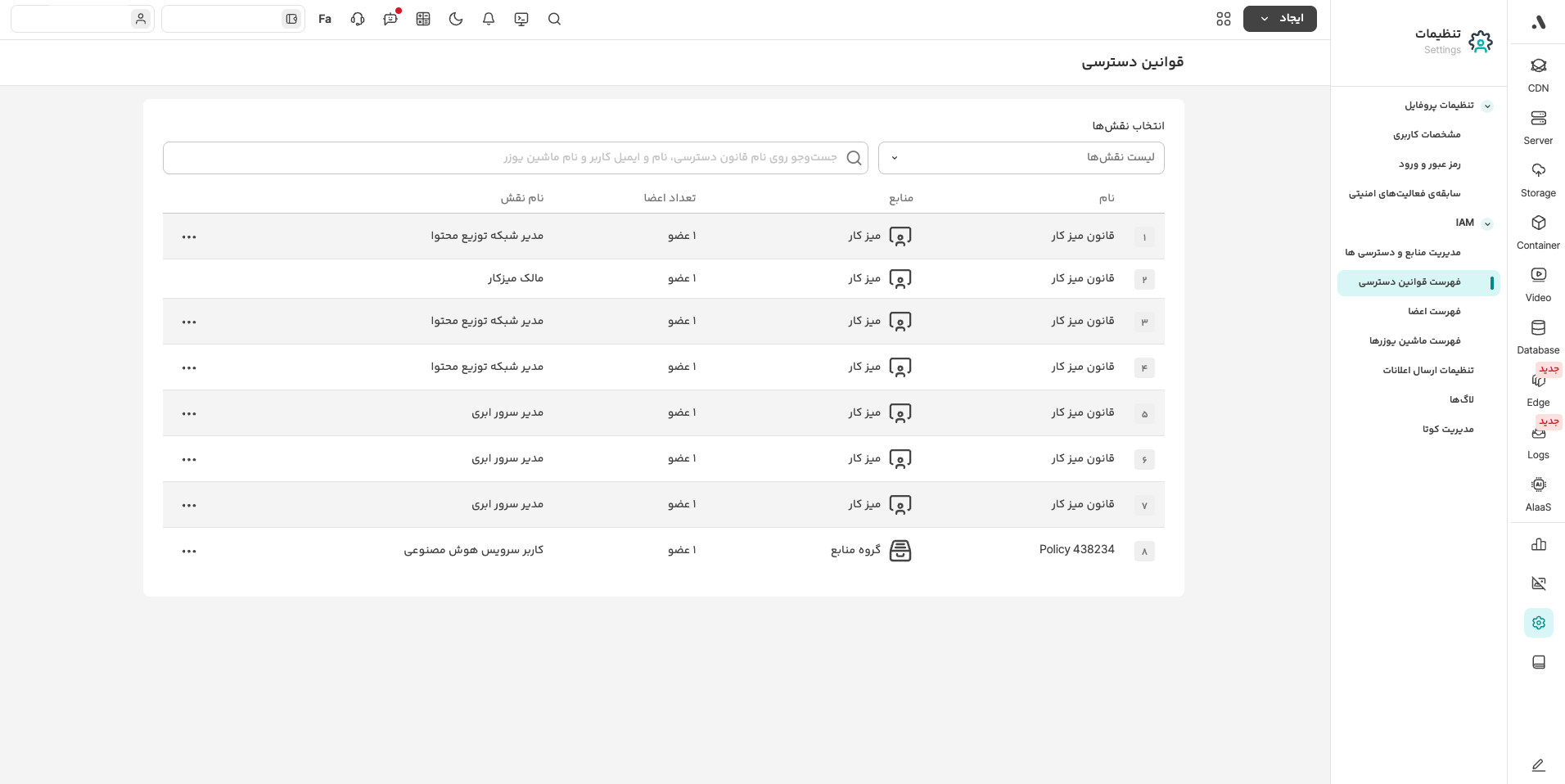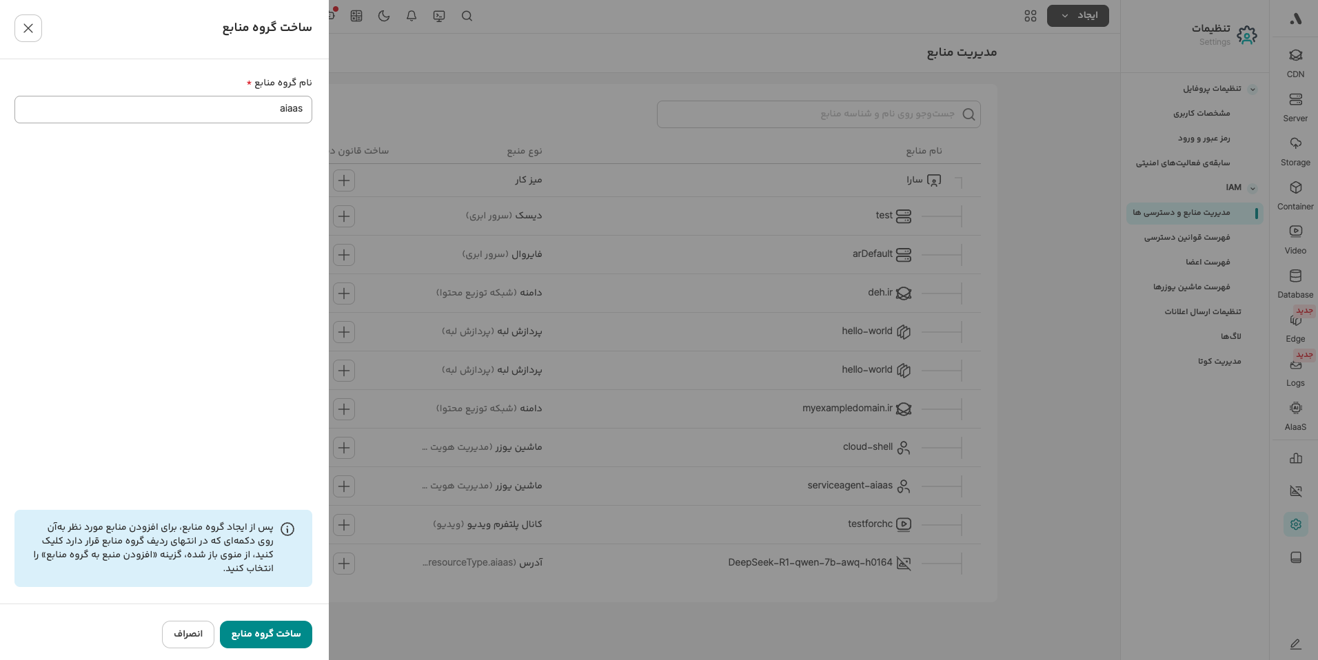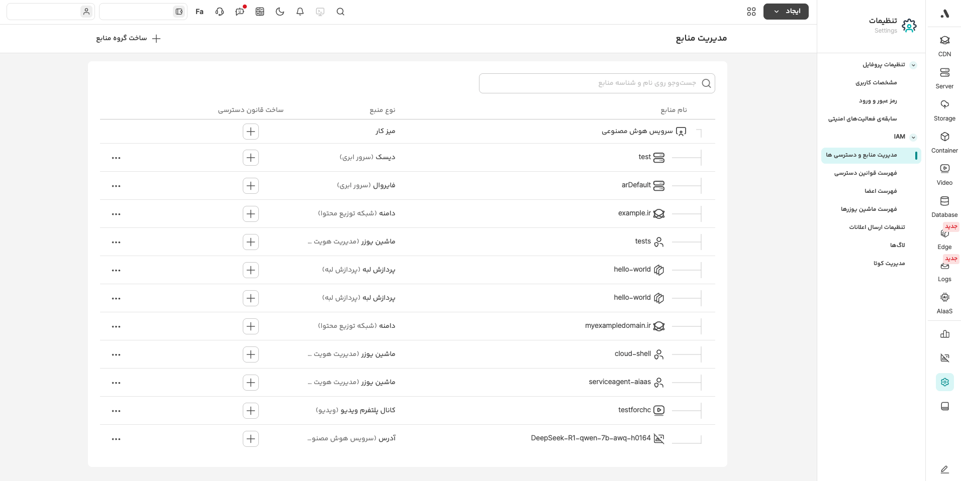 توصیه می‌شود پس از ایجاد هر منبع در AIaaS آروان، سطح دسترسی به آن را در این بخش مشخص کنید.