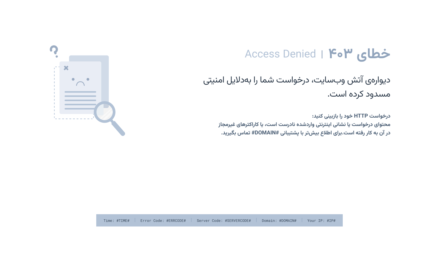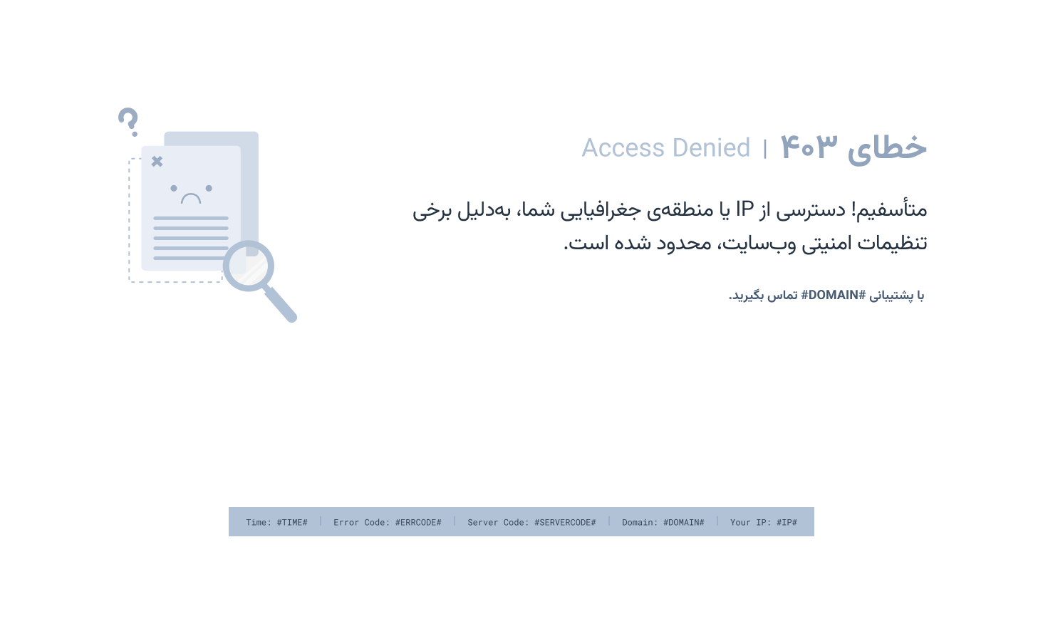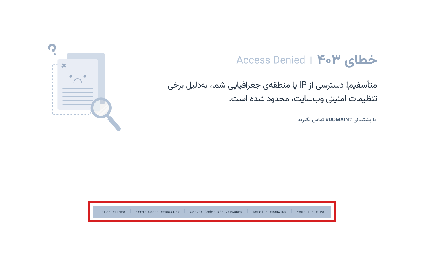 | #ERRCODE# | کد خطای نمایشدادهشده را نشان میدهد (403، 5XX و ...). |