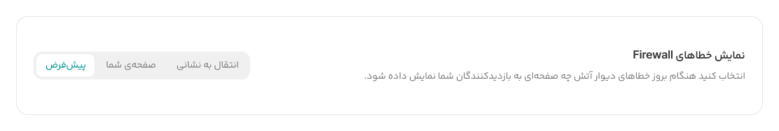 در این بخش برای صفحات خطا و صفحهی بهروزرسانی بهشکل مجزا امکان استفاده از صفحهی پیشفرض یا صفحهای جایگزین را خواهید داشت. با انتخاب گزینهی «صفحهی شما»، میتوانید فایل HTML مربوط به صفحهی خود را بارگذاری کنید.