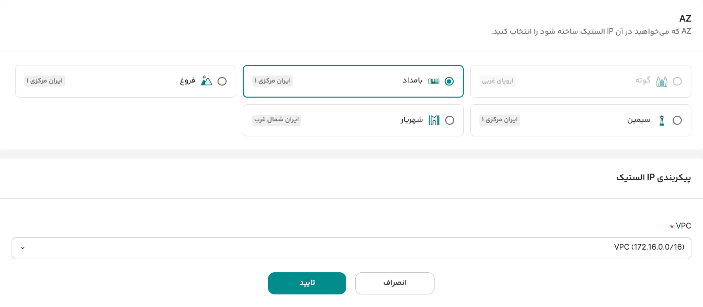 بر اساس AZ انتخابشده، فقط VPCهای همان ریجن نمایش داده میشوند.