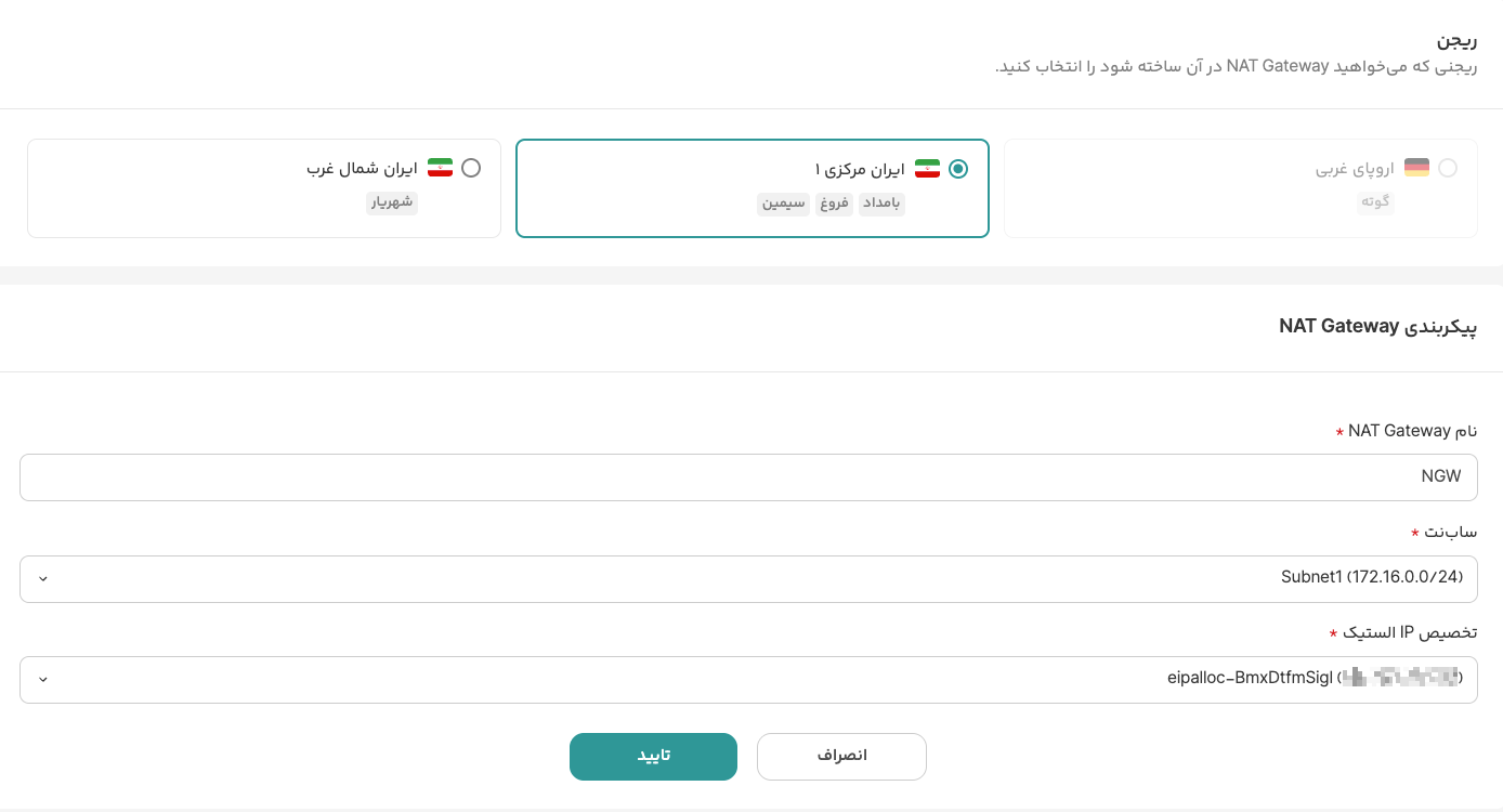 Region یا منطقهای که میخواهید NAT Gateway در آن ساخته شود را انتخاب کنید.